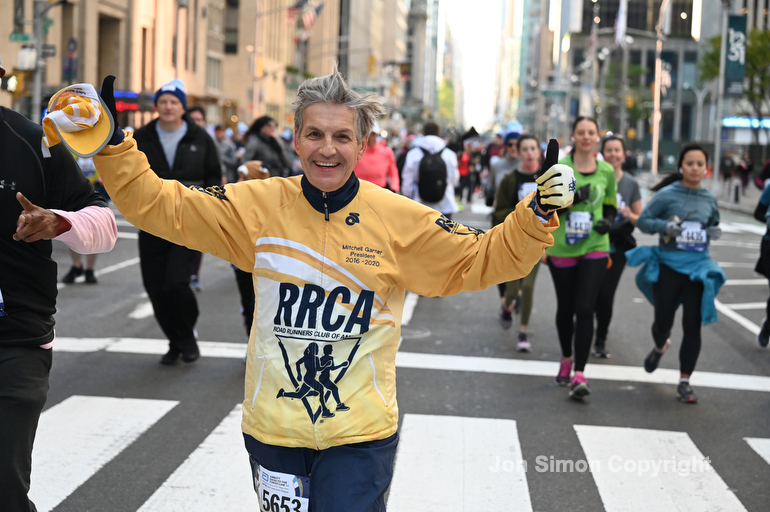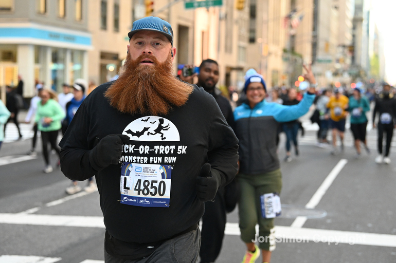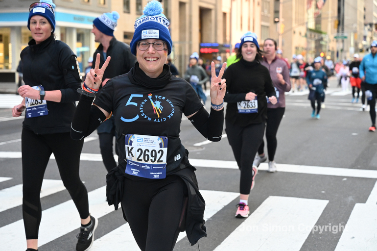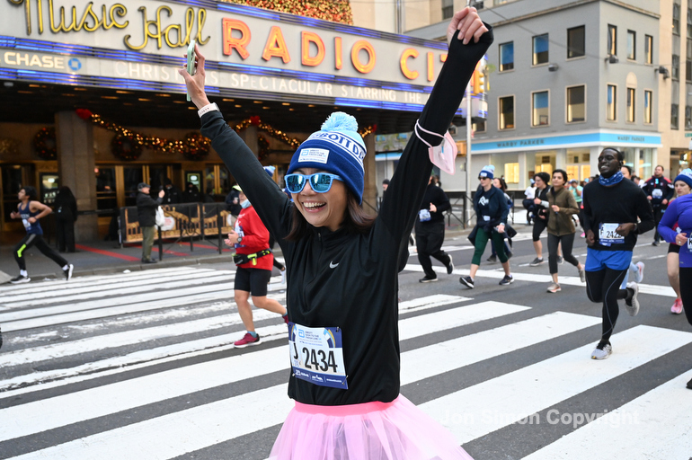 New York City Marathon 21 “Abbott Dash to the Finish” 11/6/21. A sea of runners take to the streets of Manhattan for the 5K race. The race is the warmup event one day before the NYC Marathon. Runners start at the United Nations and run to the Marathon finish line in Central Park. Here the runners run up 6th Avenue past the Radio City Music Hall.