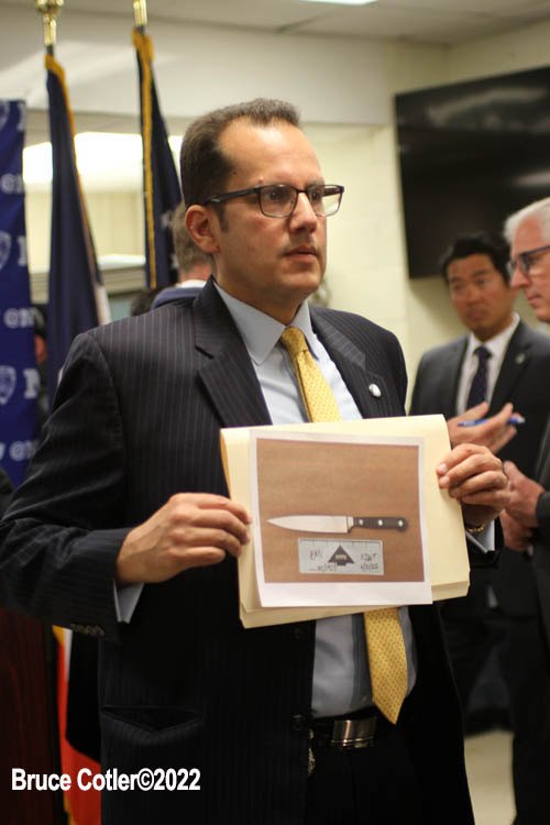 April 19, 2022 David Bonola, 44, was taken into custody Thursday on murder and other charges in connection with Orsolya Gaal’s death. Bonola, a Queens handyman, is accused of stabbing over 58 times, stuffing her body in duffel bag and dragging it blocks away from the murder scene. News Conference by Chief of Detcetives James Essig announcing the arrest of David Bonola and producing evidence photos from the crime scene. Lt. Timothy Thompson answers questions from the News Media.