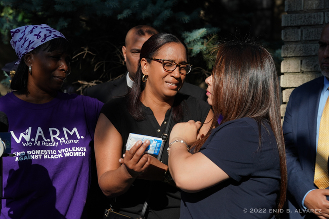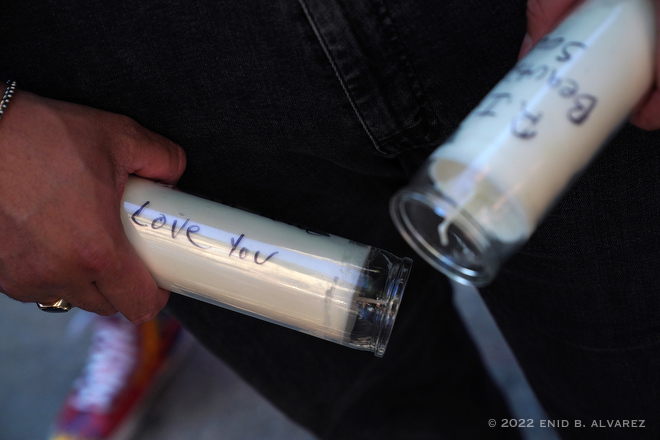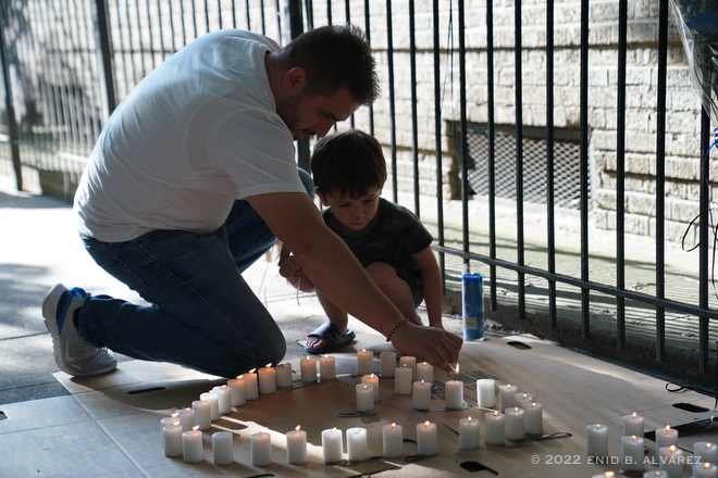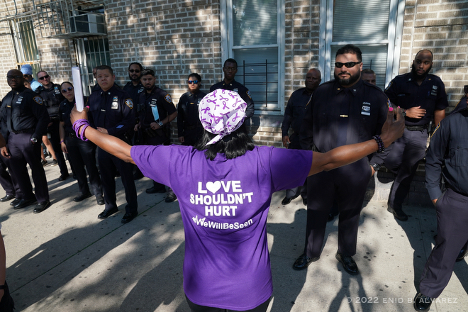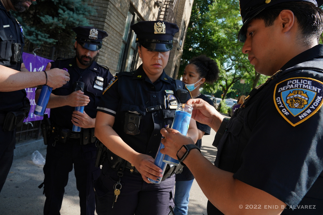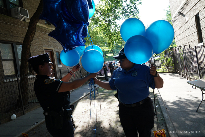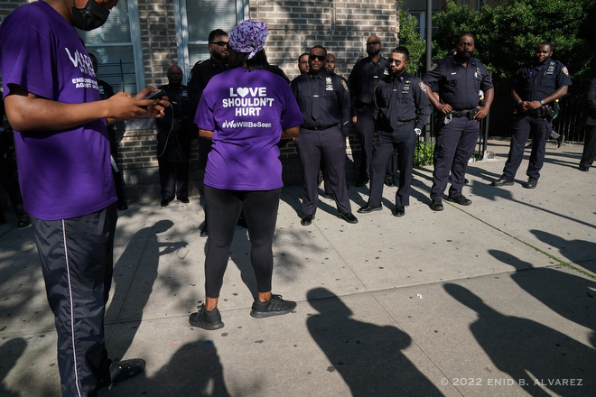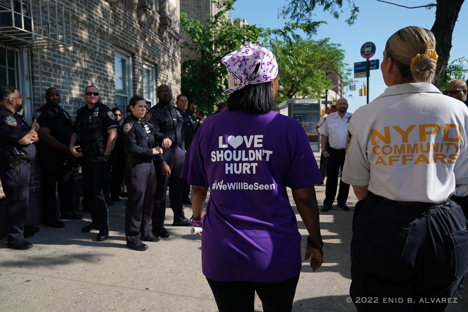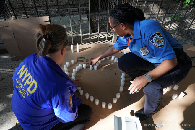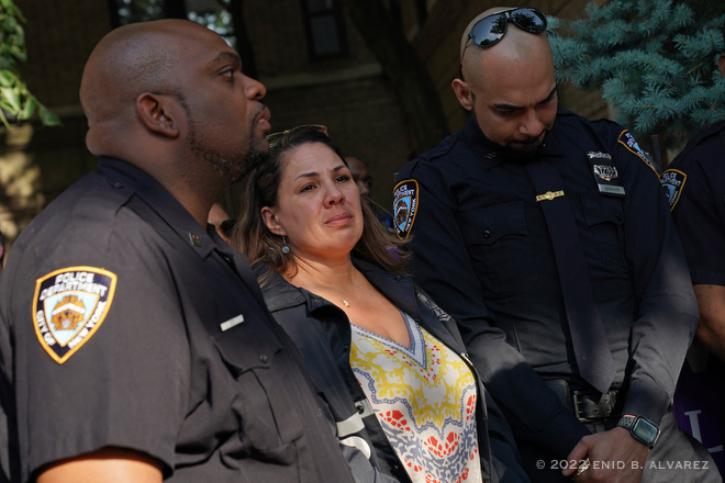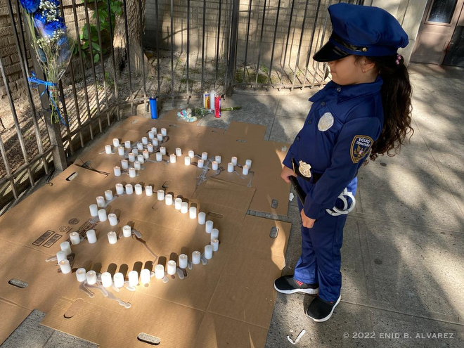 NYPD light candles for slain Transit Officer Adrianna Reyes-Gomez. Bronx residents, NYPD officials and Bronx elected officials hold a Candlelight Vigil in honor and in memory of NYPD Transit Officer Adrianna Reyes-Gomez who was brutally murdered in her Bronx apartment at 780 Grand Concourse, Bronx, New York 10451 on Wednesday, June 15, 2022