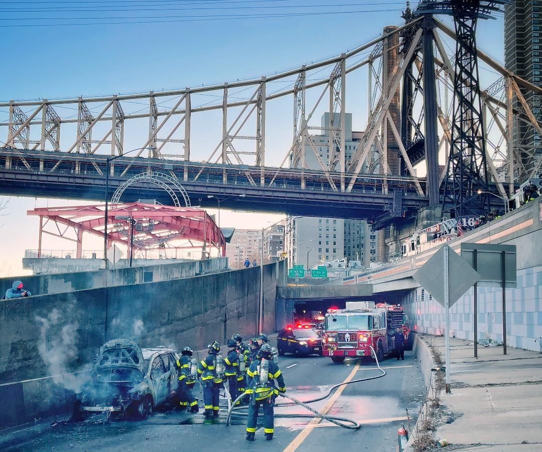 Car Fire on The FDR Drive Firefighters Extinguish a car fire on the FDR drive at E. 63rd St. today. There were no injuries Photos by David Handschuh