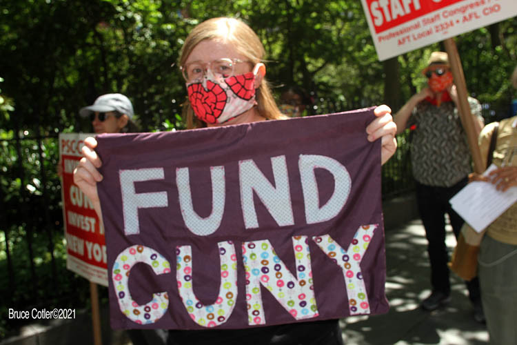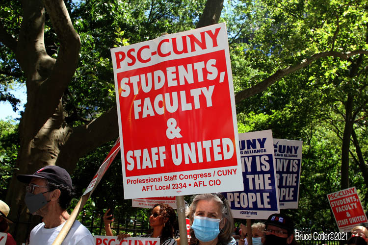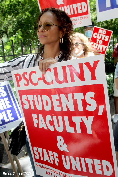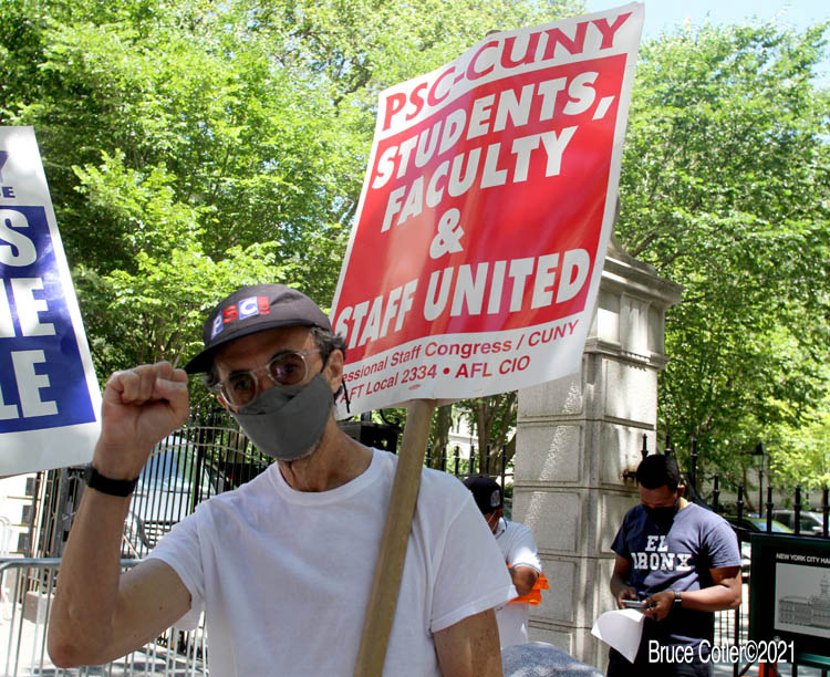 City Hall Protest Member of the Professional Staff Congress the college union that represents professors and college staff, protest in front of New York’s City Hall. 1 2 ► Photos By Bruce Cotler