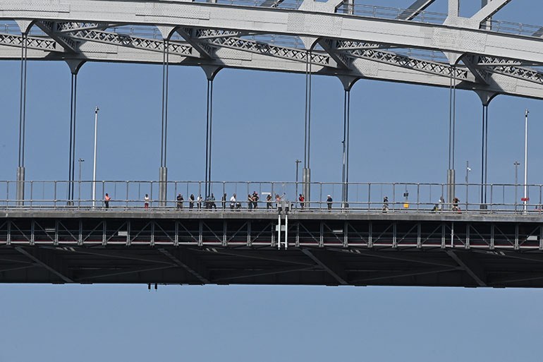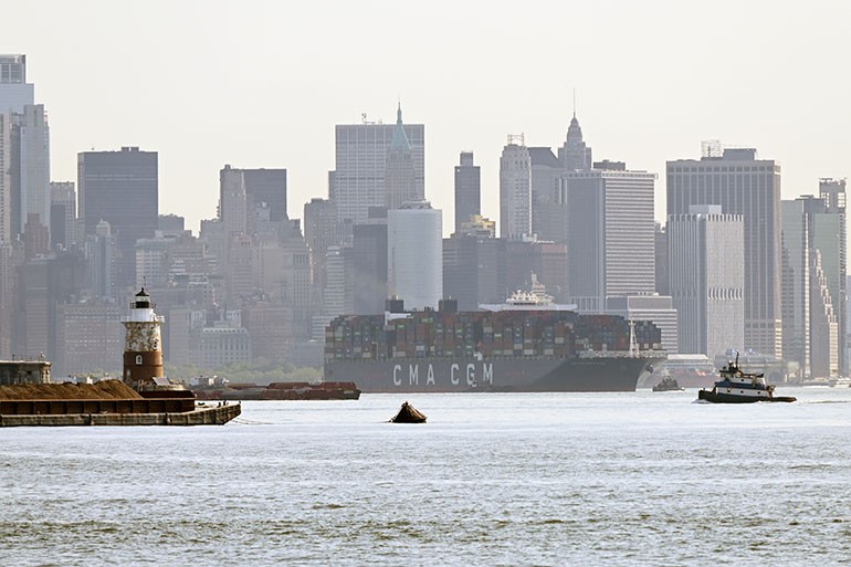 The “CMA CGM Marco Polo”, the largest ship to ever visit the East Coast of the US, sailed into New York harbor this morning, Thursday, May 20, 202.. It passed the Statue of Liberty and lower Manhattan, before turning around and sailing through the Kill Van Kill, and then under the Bayonne Bridge in route to Port Newark. School children who attend the Harbor School on Richmond Terrace had an opportunity to cross the street from their building and pose with the ship as it sailed behind them.