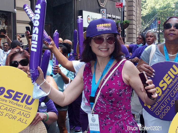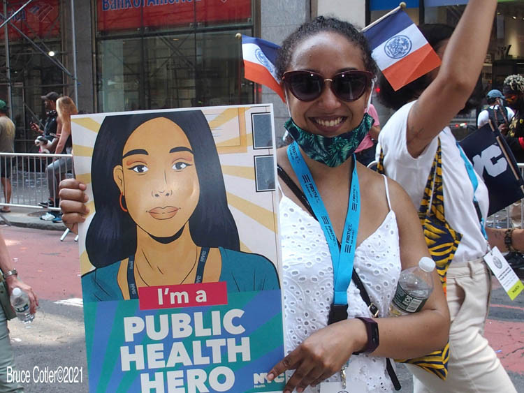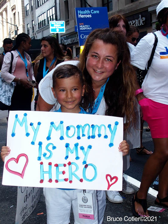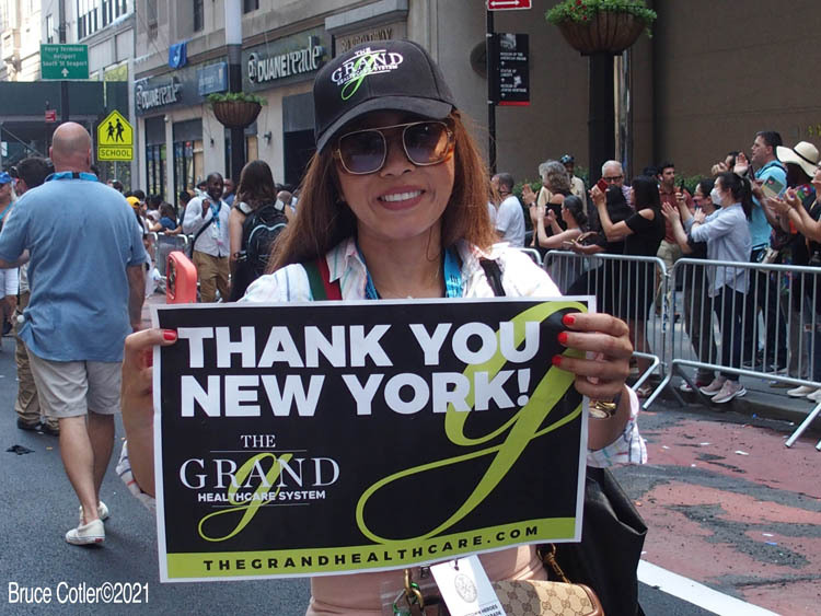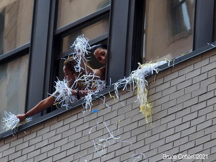 Grand Marshal Sandra Lindsay, the first person in the United States to receive an approved COVID-19 vaccine, Senate Majority Leader Charles Schumer, Mayor Bill Di Blasio and Charlene McCray, Eric Adams and more attend the Hometown Heroes Ticker-tape Parade along the Canyon of Heroes on July 7, 2021 in New York. The parade included a variety of different floats, representing the groups of essential workers who served this city heroically throughout the pandemic.