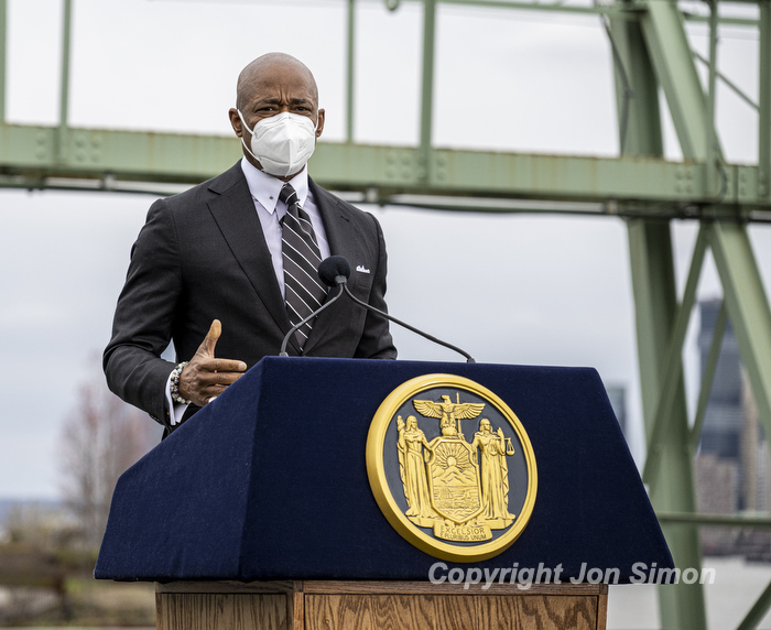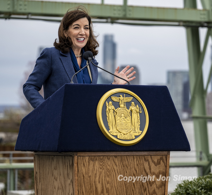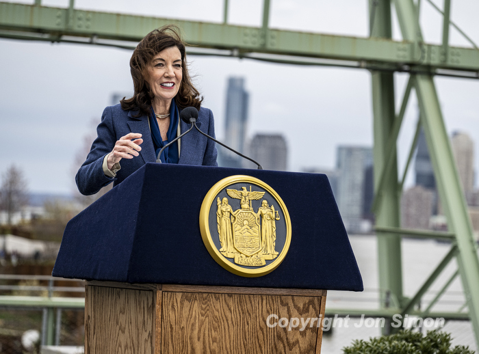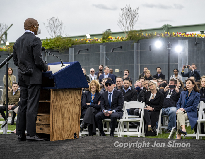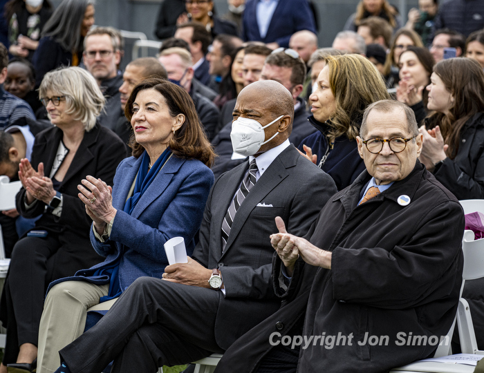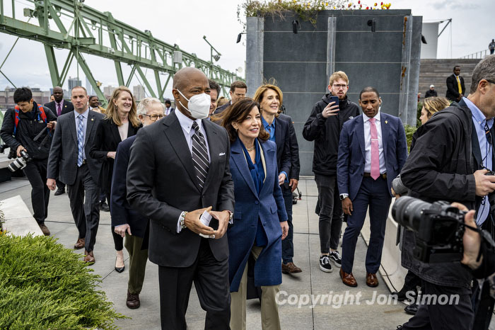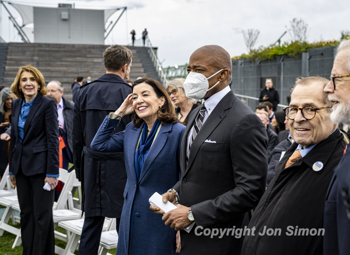 Hudson River Park Pier 57 Grand Opening Mayor Eric Adams and Governor Kathy Hochul along with members of the Hudson River Park Trust at the grand opening of a public rooftop park on top of Pier 57 in Manhattan, 4/18/22. Photos by Jon Simon