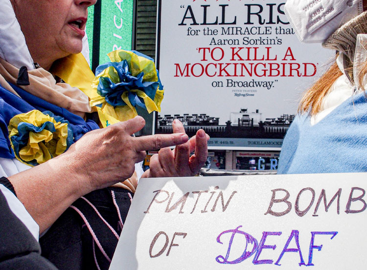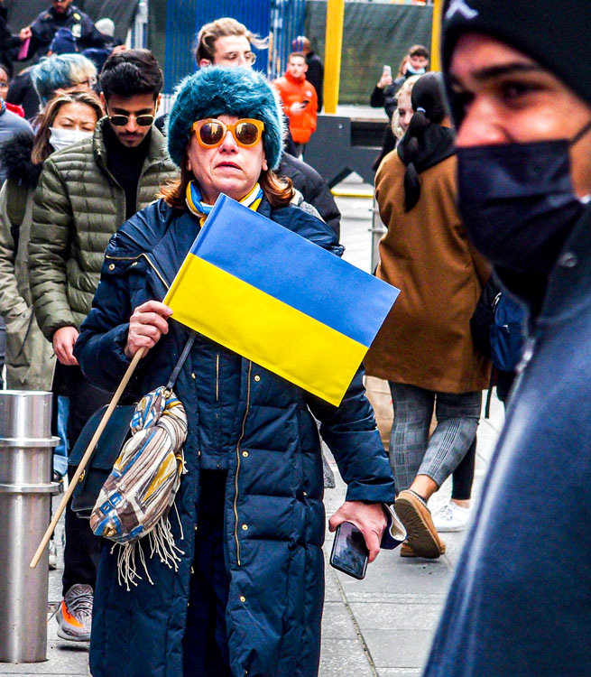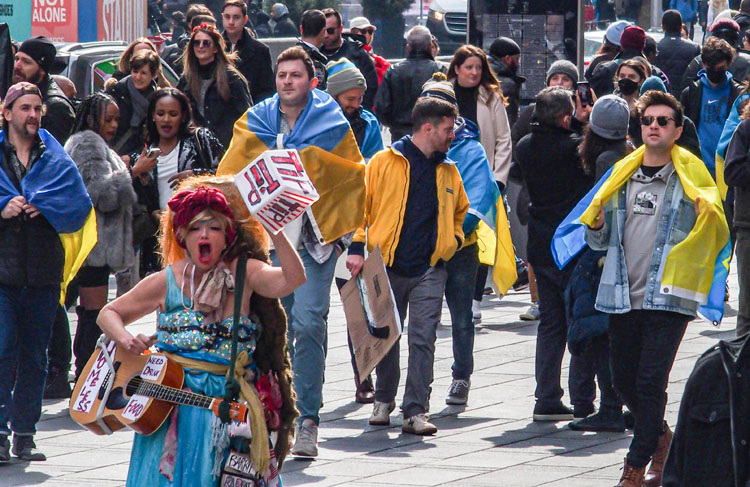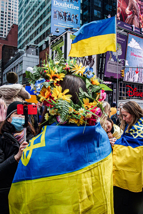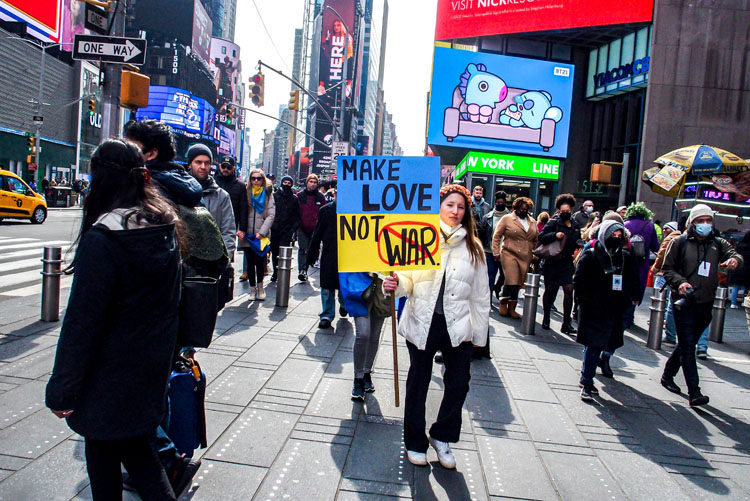 Largest Protest Yet in NYC Against Ukrainian War Thousands of all nationalities came together to protest the Ukrainian War in Times Square from noon well into the afternoon. Saturday, March 5, 2022. 1 2 ... 4 ► Photos by Dan Herrick, Lori Hillsberg, Bianca Otero and Linda Rosier