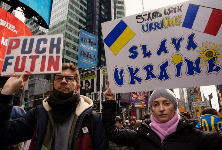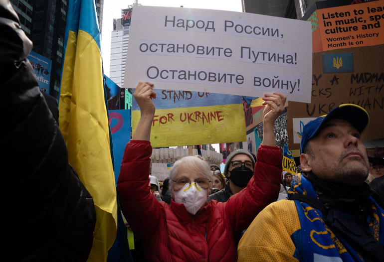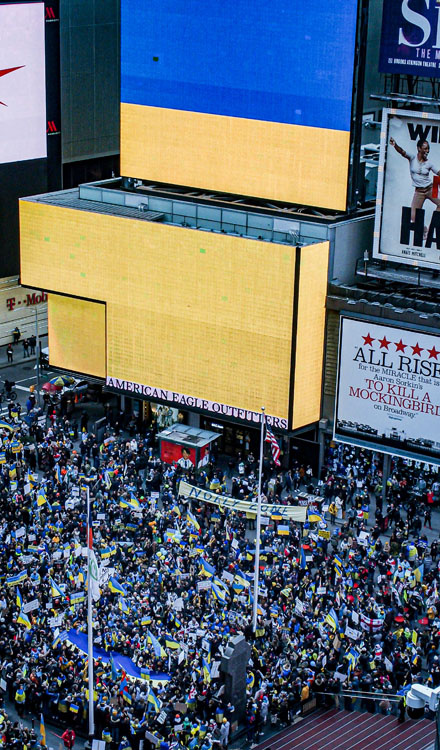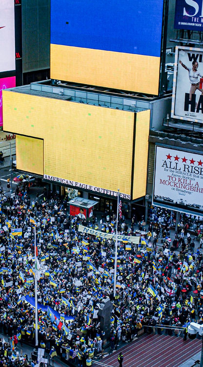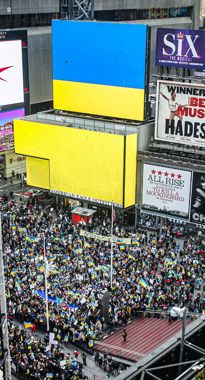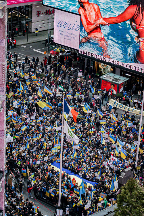 Largest Protest Yet in NYC Against Ukrainian War Thousands of all nationalities came together to protest the Ukrainian War in Times Square from noon well into the afternoon. Saturday, March 5, 2022. ◄ 1 2 3 4 ► Photos by Dan Herrick, Lori Hillsberg, Bianca Otero and Linda Rosier