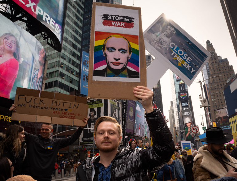 Thousands of all nationalities came together to protest the Ukrainian War in Times Square from noon well into the afternoon. Saturday, March 5, 2022.