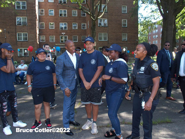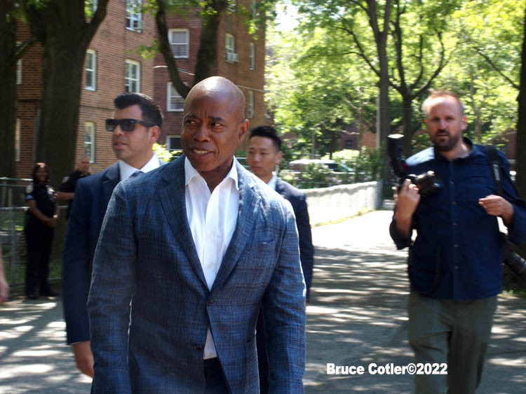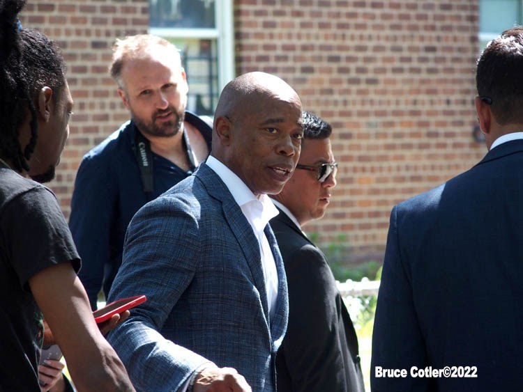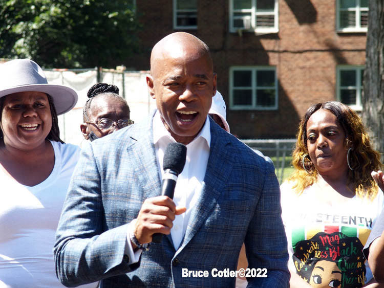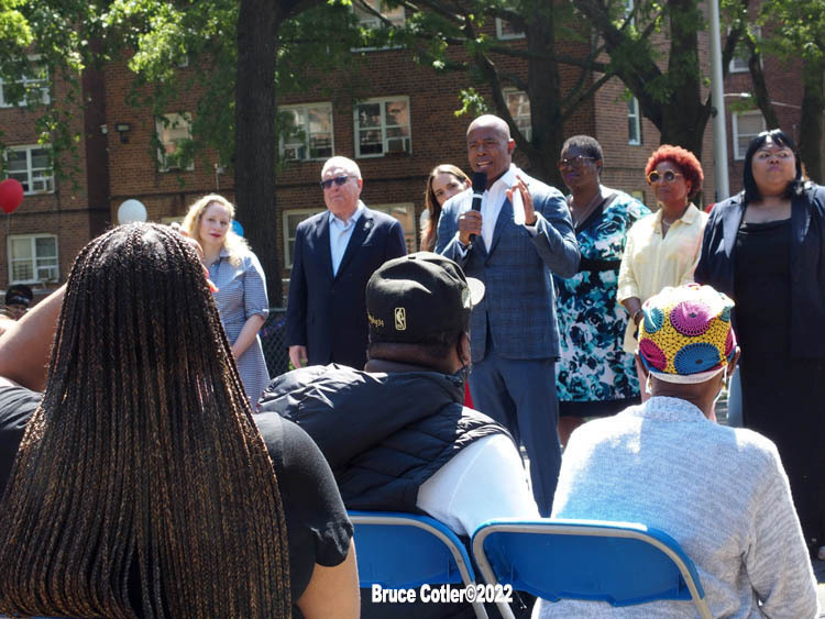 June 4, 2022 NEW YORK New York City Mayor Eric Adams speaks at New York City Housing Authority (NYCHA) Trust. Politicians and tenants meet and talk to each other about how to spend money to do much needed repairs. The event took place at the Sheepshead/ Nostrand housing complex in Brooklyn.