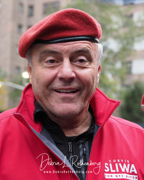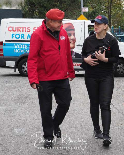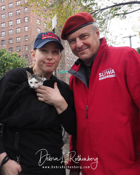 Mayoral Candidate Curtis Sliwa joins his wife and Upper West Side City Council Republican Candidate Nancy Sliwa for Early Voting at the Edward A. Reynolds West Side High School in New York City . They brought along Gizmo, the kitten they are fostering that will soon be up for adoption.
