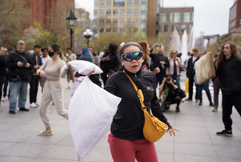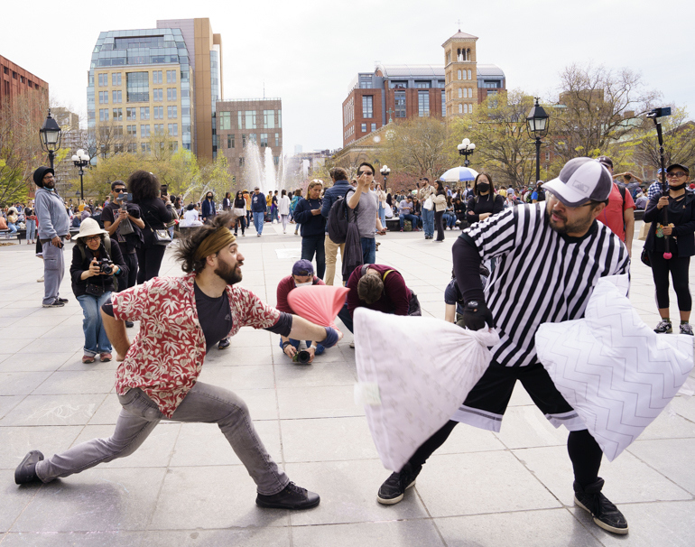 Mini Pillow Fight Washington Square Park.