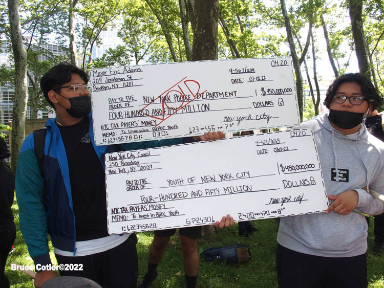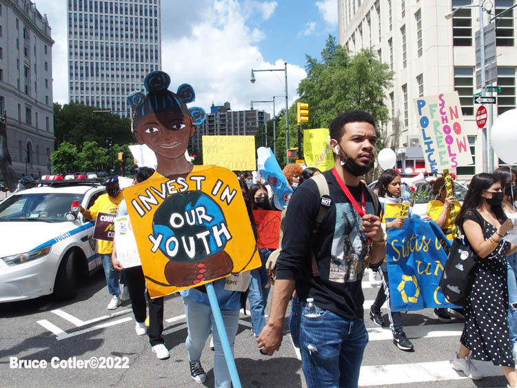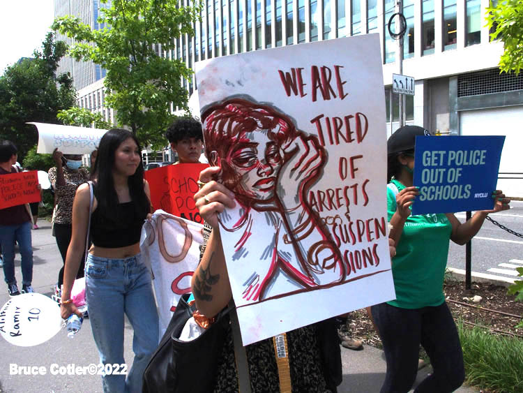Police Out of Schools Rally and March June 8,2022 NEW YORK – A Coalition of students from New York City rally and march across the Brooklyn bridge demanding schools be police free. Photos by Bruce Cotler