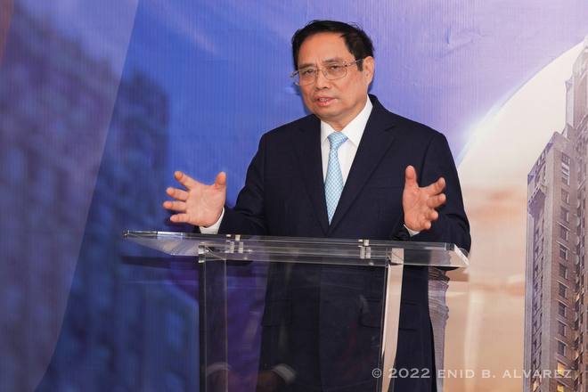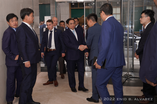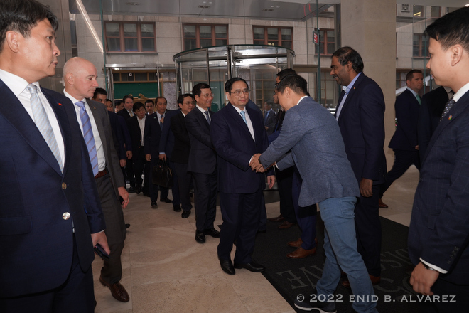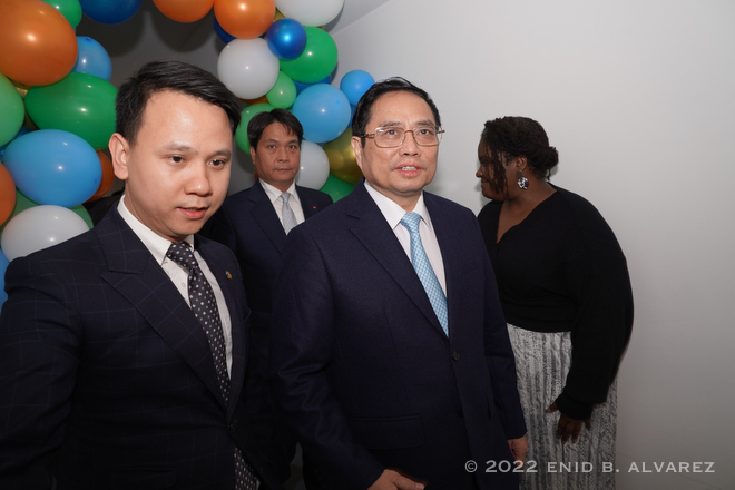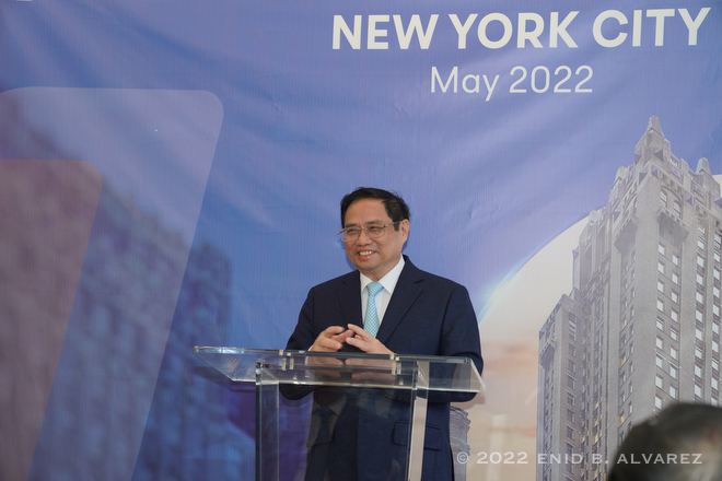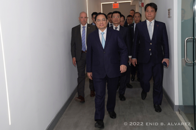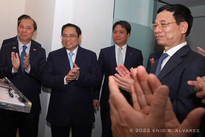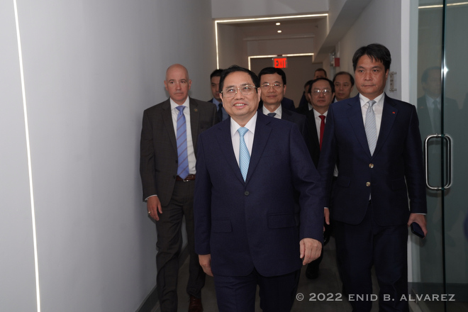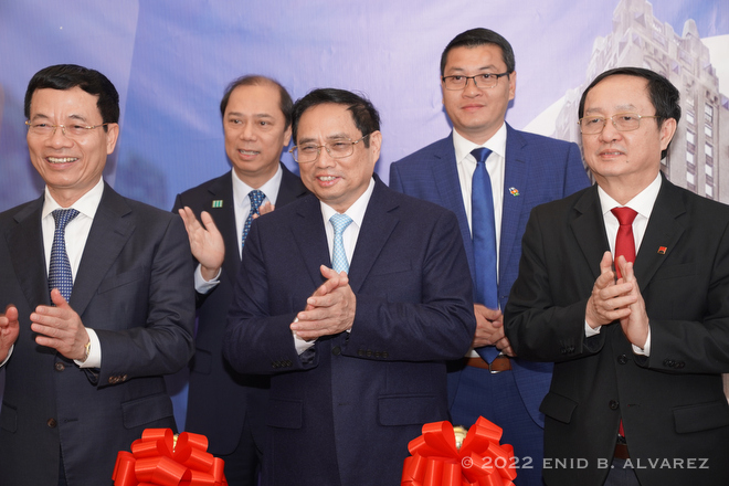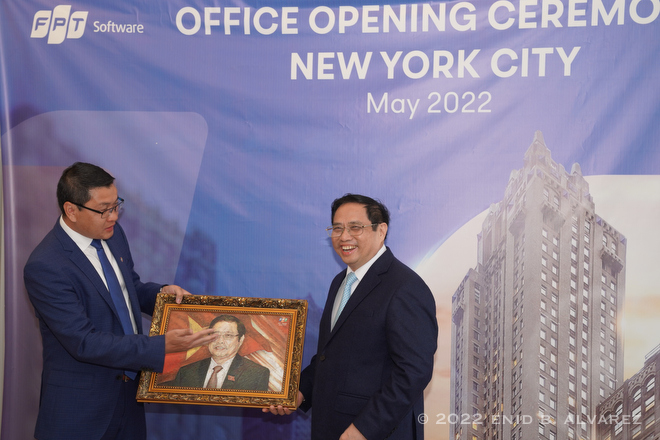 Prime Minister Pham Minh Chinh who is in New York for a week-long working trip to the US makes a stop at the FPT USA Corp office for the opening ribbon cutting ceremony at 295 Madison Avenue in New York, NY on Sunday May 15, 2022