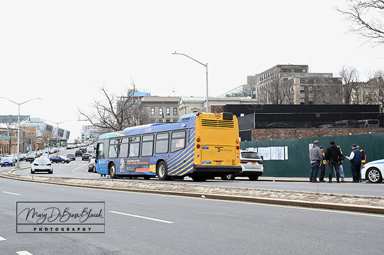 An MTA bus was badly damaged on its right front during a late morning accident on Richmond Terrace near Hamilton Avenue. The S40 MTA Bus was traveling towards the St George Ferry Terminal. The intersection is just a few blocks from the Staten Island Ferry and Richmond County Bank Ball Park. The bus was hit by a large vehicle that was exiting a construction site. Eleven minor injuries were reported, in addition to the driver of the bus who suffered cuts.