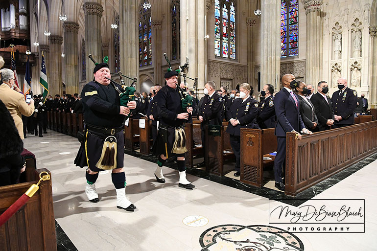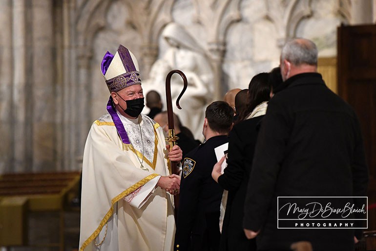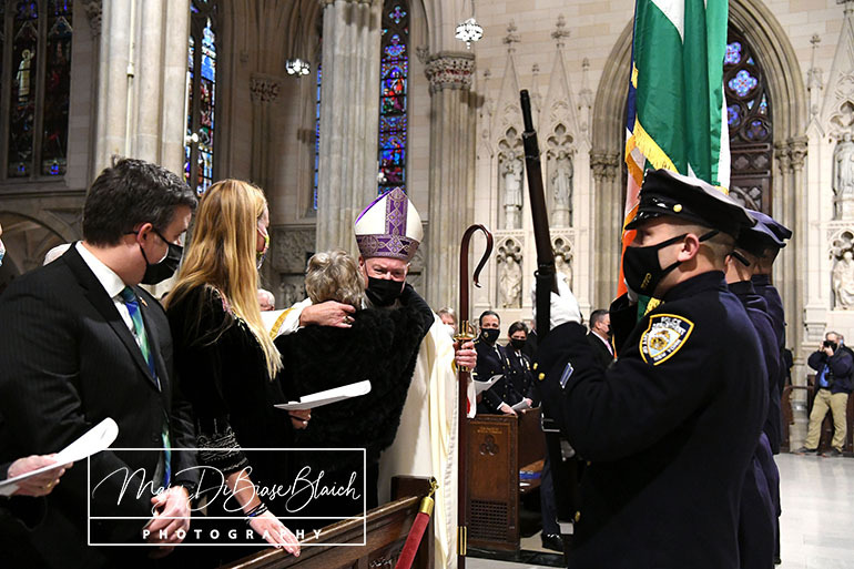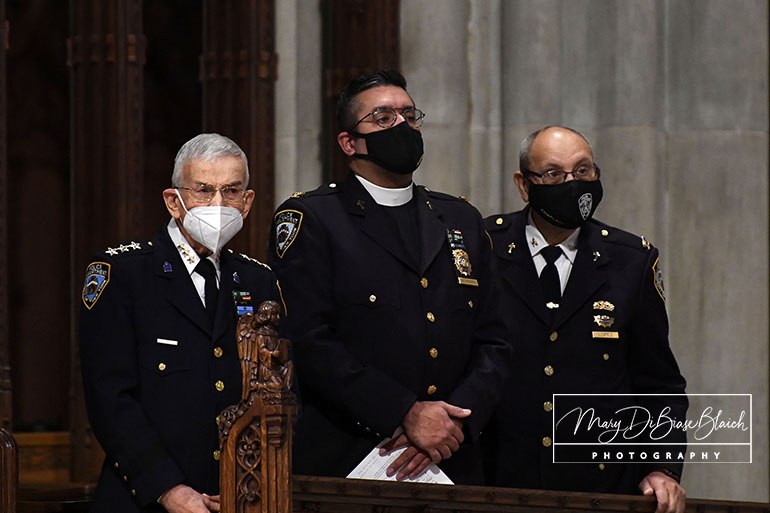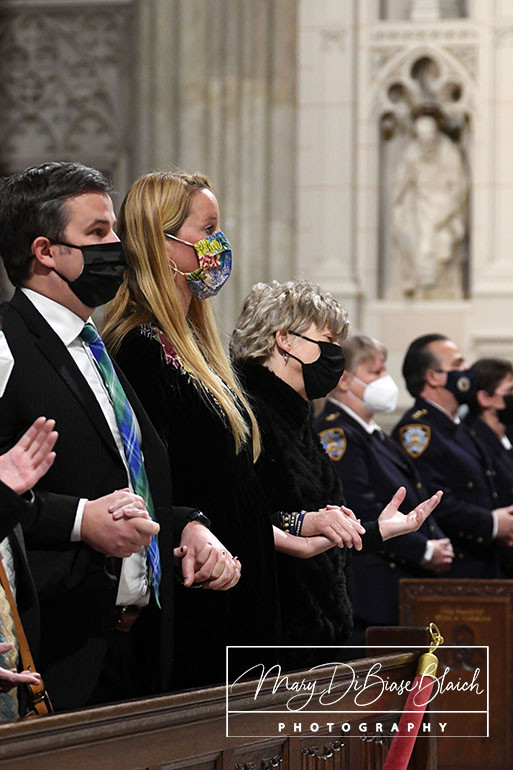 On Tuesday, January 18, 2022, Detective Steven McDonald was remembered with a Mass on the fifth anniversary of his death. Cardinal Dolan presided. The Mass was held at St Patrick’s Cathedral in New York, NY. Attending were his widow, Patti Ann McDonald; son, Lt Conor McDonald and his wife, Katie Sullivan McDonald. The Mayor