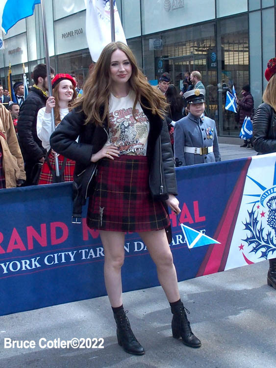 Grand Marshal Karen Gillan is a Scottish actress and filmmaker. For the first time since 2019, the 2022 annual Tartan Day Parade in New York was hosted in person.